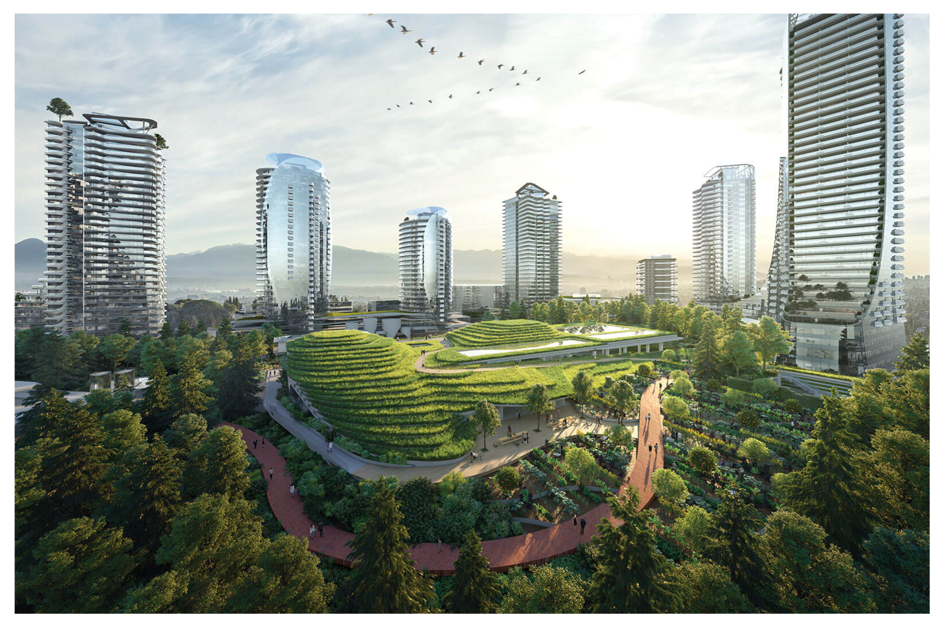 The new public park at Oakridge Mall is a foundational new approach to urban public space within Vancouver. A nine-acre park will sit upon and adjacent to the redeveloped mall, currently in construction, providing a significant boost to access to green space for this community.